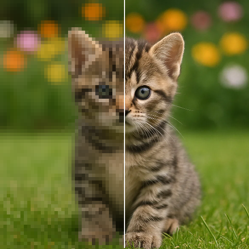 UpSynth analysiert dein Bild automatisch, rekonstruiert fehlende Details und reduziert dabei typische Störungen wie Artefakte oder Bildrauschen, während wichtige Strukturen und der Charakter des Originals erhalten bleiben.