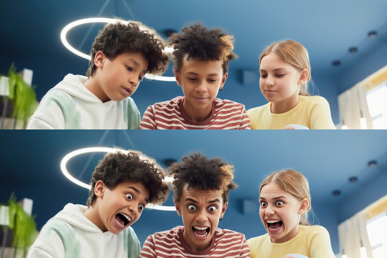 Kleine Gesichter und feine Details gehen beim Hochskalieren oft verloren oder wirken verfremdet. Besonders bei alten Fotos, Scans oder stark verkleinerten Motiven leidet die Wiedererkennbarkeit schnell.