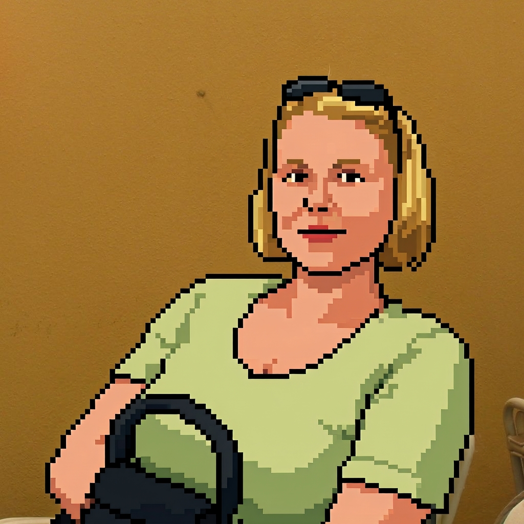 „Create a pixel art version of the woman, but make sure her face is still recognizable“